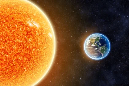 A Terra orbita o Sol a uma distância média de 150 milhões de quilômetros (93 milhões…